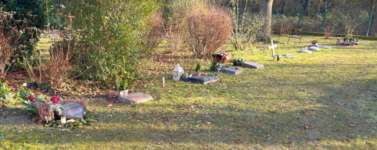- Die Position der Grabstätte auf dem Friedhof kann nicht gewählt werden. Die Belegung erfolgt im jeweiligen Grabfeld der Reihe nach.